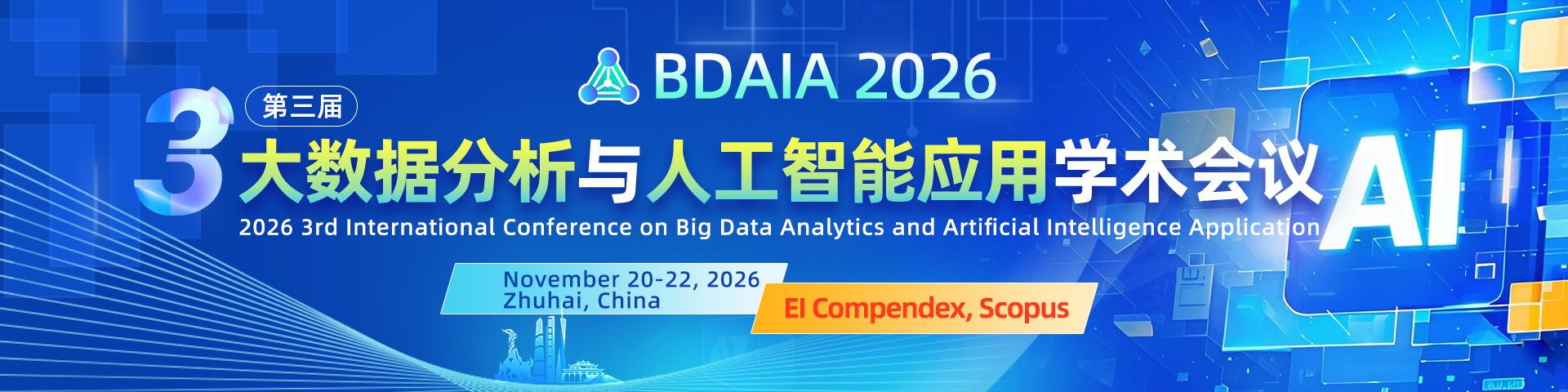 Organized by Zhuhai College of Science and Technology and Guangdong University of Technology, the 3rd International Conference on Big Data Analysis and Artificial Intelligence Applications will be held in Zhuhai, China, from November 20 to 22, 2026. This conference is committed to enhancing the innovation capacity of related regional industries and build an international exchange brand with both academic depth and practical value.