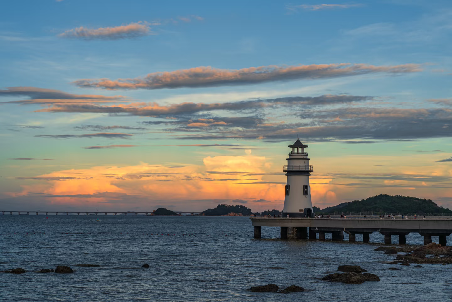 Located on the west bank of the Pearl River Estuary, Zhuhai is a charming coastal city in southern Guangdong, well-known as the “City of a Hundred Islands”. With mild climate, fresh air and abundant green scenery, it ranks among China’s most livable cities. Adjacent to Macau and connected with Hong Kong via the Hong Kong-Zhuhai-Macao Bridge, it enjoys convenient global transportation. The picturesque Lovers’ Road runs along the coastline, and the iconic Fisher Girl Statue stands as the city’s landmark. Visitors can enjoy peaceful seaside views, diverse offshore island scenery and unique Lingnan coastal culture.